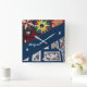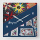 Um redemoinho de Flores e Estrelas é desenhado a partir de duas colchas feitas à mão, uma das estrelas, e outra das flores com borda azul. Um design maravilhoso que apelará a qualquer colcha. Um decor de parede do excelente para qualquer sala de costura ou compro de artesanato. Faria um presente de excelente para qualquer abrigo ou esgoto. O relógio pode ser personalizado mudando o nome "Margaret" para outro nome para torná-lo especial.