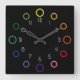 Quadrado Relógio - Anéis coloridos em preto
