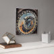 fotografia em azul preto e laranja. fotografia colorida detalhada de um marco histórico medieval, um antigo relógio astronômico em praga na europa com sinais azuis, laranja e marrom, astrologia e números romanos. fotografia em azul e laranja.