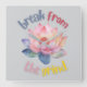 Um relógio com uma flor de lótus aquosa, com a frase "Quebrar do Grind" centrada à volta da imagem. A flor de lótus, conhecida pela sua beleza e resiliência, simboliza a pureza, o iluminismo e o despertar espiritual, sugerindo uma fuga pacífica das pressões diárias.