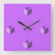 Os blocos tridimensionais estão localizados nas posições 12, 3, 6 e 9 da face do relógio e são adequadamente marcados com esses números. Personalizar/Editar para alterar a cor de fundo.