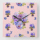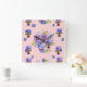 Quadrado Relógio com Arte Floral de Pensamentos Cor-de-Rosa