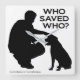Relógio com imagem de humano e cão com texto, que salvou quem e dois endereços da Web (se sinta livre para remover)