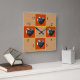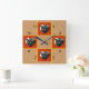 A imagem de Pet aparece nas 12, 3, 6 e 9 pontos deste relógio de "colcha de retalhos". Sua imagem quadrada será colocada dentro do quadro em forma de coração vermelho. O plano de fundo pode ser personalizado/editado para a cor de sua escolha.