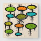 Médio século Moderno relógio de design da era espacial, formas geométricas em cores de verde limão, cor de laranja, cor de laranja.