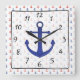 Quadrado Relógio de Âncora Vermelho Azul na Praia Náutica