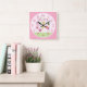 Quadrado Relógio de Borboleta Rosa-Rosa Personalizado