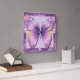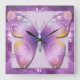 Relógio de acrílico quadrado com uma borboleta de fantasia grande e um quadro roxo brilhante brilhante sobre fundo de lavanda leve. Numeração tradicional com aspecto roxo e branco gravado. Clique no botão "Personalizar!" para alterar a cor do plano de fundo, adicionar fonte, tamanho e posição, conforme necessário. Trabalho de arte e design por Karlajkitty
