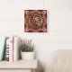 Relógio de Arte Personalizado : design tribal único inspirado, ouro terrestre deixa o padrão circular em vermelho e ouro; centrado na frase 'Bismillah' na caligrafia árabe no centro, para bençãos muçulmanas diárias em casa ou no escritório. Como minhas designs e Arte? Eu adoraria te ver na minha página do Facebook!