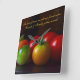Foto macro de tomate vermelho e verde sobre fundo mudo em tons de marrom e cinza. A citação está em um script ouro amarelo e diz: "Os melhores momentos sempre são encontrados quando amigos e familiares se reúnem." Bela peça de decoração da cozinha!