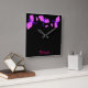 Personalize este relógio do dragão com seu nome ou outro texto. Três dragões roxos e cor-de-rosa estão organizados no topo do relógio sobre um fundo preto. Na parte inferior do relógio há uma área para personalizar o texto em uma fonte antiga no estilo inglês. O texto está em tom de coordenação rosa. Criei esta design para apelar às jovens (pensem na adolescente) tanto com um lado mais escuro como feminino. Este design combina ambos usando gráficos vetoriais simples para fazer uma declaração em negrito.