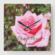 Linda flor de rosa rosa rosa. Relógio de parede decorativa com toque pessoal. Adicione seu texto.