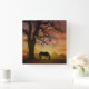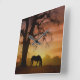 Este belo relógio de um cavalo silenciado e de um carvalho com um pôr do sol sudoeste.