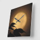É outono, e uma lua de cheio amarela ouro luminosa subiu atrás das silhuetas pretas de folhas soprando na brisa neste dramático relógio de fotografia de arte. O fundo é iluminado em tons de laranja, ouro e marrom para criar um padrão de abstrato num motivo asiático.