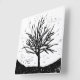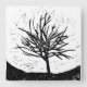 Impressão de lino preto e branco da silhueta de uma árvore automática.