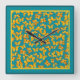 Quadrado Relógio de Parede, Borboletas de Ouro no Teal
