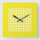 Quadrado Relógio de Parede, Gingham Amarelo e Bolinhas