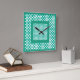 Quadrado Relógio de Parede, Padrão Geométrico Verde Esmeral