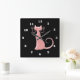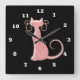 Quadrado Relógio de Sillohette de Gato Rosa