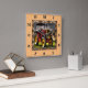 Este trator vintage tem um velho cobrir de telhado castanho. Com velhas costelas de metal amarelo.O corpo era vermelho e a grelha frontal é amarela.Você pode ver as nuvens de cinza e a grama verde.Este relógio tem um número marrom abstrato de 1 a 12.E um quadro abstrato e o fundo laranja claro. A cor de fundo pode ser alterada para qualquer cor que você queira que ela seja com a marca personalizada.