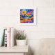 Uma "montanha de vidro manchado" evoca a beleza de uma majestosa cordilheira, como se fosse vista através dos intrincados e coloridos padrões de uma janela de vidro manchado. Os picos esmagados são divididos em painéis de matizes vibrantes — blues, púrpura, verde e dourados — cada um capturando a luz e as estações em constante mudança. A luz solar filtra através destes fragmentos coloridos, criando um brilho radiante, quase de outro mundo, que destaca os detalhes e sombras da montanha. O efeito é como se toda a paisagem fosse um mosaico, com cada fragmento representando um pedaço da complexidade da natureza, misturando precisão geométrica com formas orgânicas de rocha e céu.