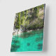 Este deslumbrante relógio de parede mostra as águas turquesas do lago Tahoe. Este relógio é uma forma excelente de adicionar cor e beleza a qualquer casa ou escritório!