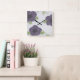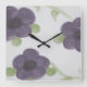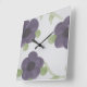 Relógio de designer floral de aquarela. Flores roxas, arrojadas e design de folha verde-oliva.