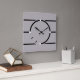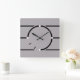 Um relógio quadrado muito moderno em cinzas com linhas pretas no estilo Art Deco.