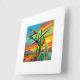 Belo pôr do sol com cacto e pássaro voador com montanhas ao fundo