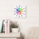Quadrado Relógio - Folhas de Roda Colorido em Branco