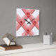 Quadrado Relógio - Listras Vermelhas Cruzadas Diagonalmente