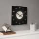 Lua de cheio no centro do fundo preto.Números árabes são representados em metal falso, com sombreamento.