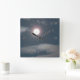 Lua de cheio num céu pré-amanhecer. A luz da lua ilumina as nuvens sábia contra o céu escuro. Os algarismos romanos têm um efeito 3d.