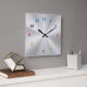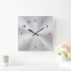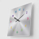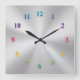 Quadrado Relógio Metálico de Prata com Números Coloridos