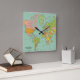 Relógio quadrado com o mapa mundial como fundo. Perfeito para qualquer quarto!