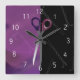 O design do relógio apresenta um par de tesouras e o fundo é roxo e cor-de-rosa com pinos de bobby. Vestir seu salão com este relógio de na moda. Fique à vontade para me contactar se precisar de algo mudado ou adicionado a este design de relógio. Trabalho de arte por ChanDraws Art e Design