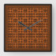 Um relógio quadrado quadrado quadrado, com um padrão de motivos tradicionais da moda galesa em preto em um fundo vermelho tijolo. Este padrão irá ajustado todos os tamanhos do relógio.