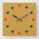 Um relógio sem número que foi inspirado por um relógio de parede na nossa "nova" casa nos anos 60. As bolas vermelhas sentam-se nas posições 12, 3, 6 e 9; as bolas pretas nos outros pontos numéricos.