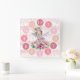 Quadrado Relógio Rosa Bonito com Ballerina Pequena Aquarela