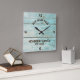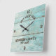 Personalize este relógio aqua rústico com o nome do casal e a data estabelecida. O relógio apresenta a frase "O amor nunca falha", servindo como um lembrete da importância de expressar o amor. A fonte é marrom-escuro, que complementa o fundo.