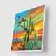 Este é um original, colorido fundo do sudoeste com um papagaio voando no pôr do sol nativo americano do oeste do excelente. Este é um belo fundo em laranjas e vermelhos e verdes com cacto ao fundo.
