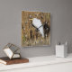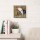 Herão (arrependimento) em gramíneas de pântano secas. Números brancos com sombra de queda. Os olhos amarelos e o bico laranja destacam-se claramente, juntamente com as penas brancas e as pernas de cinza.