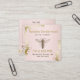 Ilustração da Rainha da Vintage em um fundo de ouro rosa. A parte traseira do rótulo pode ser personalizada para indicar o que você vende e os serviços que você oferece. É fornecido um espaço para telefone celular e Web site ou correio eletrônico. Flores silvestres coloridas ao longo do fundo da carta atrás.