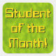 Este design de etiqueta técnica mostra a mensagem "Estudante do Mês!". Um adesivo como este poderia talvez ser usado para dar motivação positiva a um estudante. [~Z0000317]