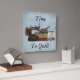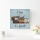 A qualquer momento é o momento certo para se colidir. Este adorável relógio "Time to Quilt" apresenta uma imagem de uma antiga máquina de costura, uma pilha de tecidos e um boião de botões sobre um fundo azul pálido; tudo pronto para a direita "Time to Quilt".