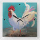 Um galo orgulhoso atravessa um fundo de turquesa neste relógio de parede divertido perfeito para sua cozinha ou sala de jantar! De uma pintura original de Shelly Penko.