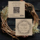 Vinhas De Fio Feitas À Mão | Cartão de visita Kraft artesanal — Possui vinhas de cobertura de folhas formadas em uma coroa na frente do cartão, juntamente com seu nome comercial e endereço do site. No verso há um código QR personalizável junto com seus outros detalhes comerciais. A parte inferior direita apresenta uma variedade de ícones de mídia social — você pode usá-los para esse fim, trocá-los por ícones da sua escolha ou excluí-los completamente. Todas as cores, texto e fundo são editáveis.