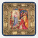 Um adesivo quadrado para combinar as nossas cartas de saudação "Visita dos Sábios" com uma imagem de um trabalho de arte da Bíblia da Virgem Maria, José, e Jesus bebê e os três sábios que vieram visitar num quadro de ouro ornamentado. Consulte cartão de saudação quadrado correspondente, cartão de saudação de 5" x 7", envelopes, caixa de favoritos, etiqueta de favor, sacos de presentes, etiqueta e papel de embalagem. Veja toda a coleção do Holiday Sticker nos CONVITES | Seção Stickers & Labels