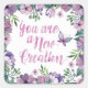 Tipo de caligrafia de estilo de aquarela que indica, "você é uma nova criação" com efeito especial de aquarela. Um quadro floral elegante com borboletas envolve o design de tipografia (quadrado). Inspirado por 2 Corinthians 5:17, "se alguém está em Cristo, ele é uma Nova Criação."