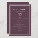 O menu de casamento simples, minimalista e elegante apresenta um design contemporâneo com uma borda branca dupla e nítida em um fundo roxo do gabinete. A formulação tradicional proporciona sofisticação eterno mas moderna. Personalize o design do casamento com os detalhes do menu em letras brancas e roteiro. A parte traseira da placa corresponde a um gabinete roxo com correspondência sólida.